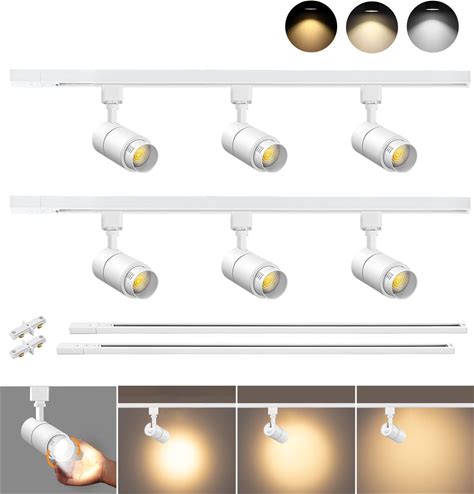Vanoopee 3-Color Zoomable 6 Light LED Track Lighting Kit With 6.6ft H Type Track Lighting Rail, LED Track Light Heads Dimmable Modern Kitchen Track