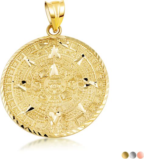 Gold Diamond Cut Ancient Aztec Mayan Sun Calendar Deity Pendant Necklace Rose Gold 10K Small Pendant With 16" Chain