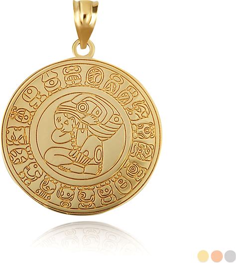 Gold Engravable Ancient Aztec Mayan Deity Sun Calendar Reversible Pendant Necklace Rose Gold 10K Allura Pendant With 16" Chain