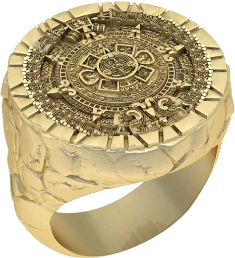 925 Sterling Silver Aztec Calendar Ring For Men Mayan Sun Jewelry
