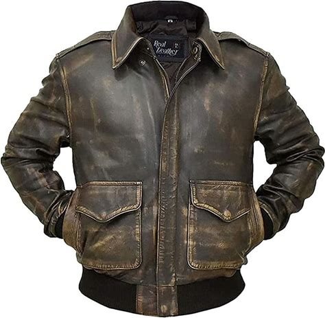 Trendsfort A2 Aviator Pilot Air Force Men Vintage Brown Flight Genuine Leather Bomber Jacket - Leather Aviator Jacket Men