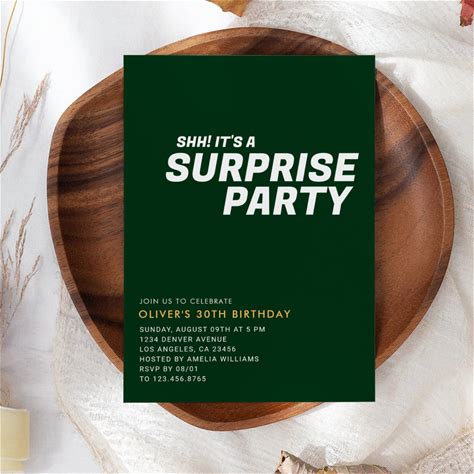 Green Elegant & Modern Surprise Birthday Party Invitation