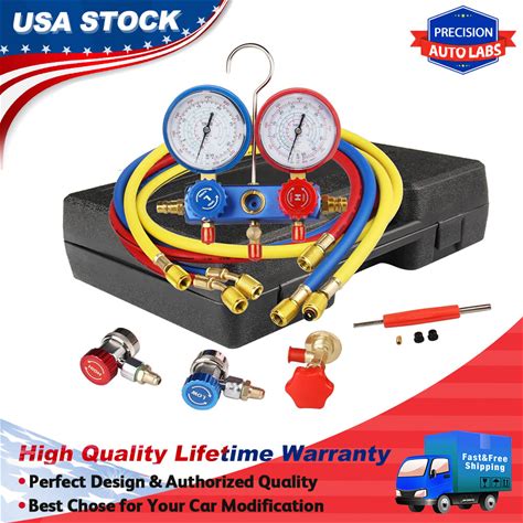 5ft AC Diagnostic Manifold Freon Gauge Set Fits For R134A R12, R22, R502, With Couplers, Adapter For Car A/C System Automotive Air Conditioning Maintenance Pack Of 2
