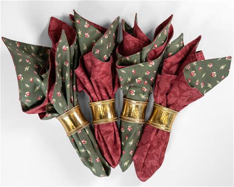 Elrene Home Fashions Poinsettia Elegance Jacquard Christmas/Holiday Cloth Dinner Napkins, Set Of 4, 17"X17", Green