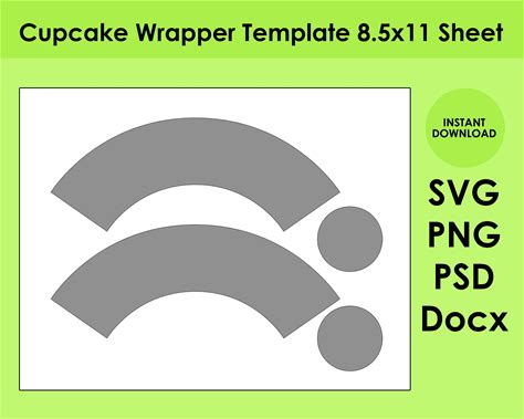Cupcake Wrapper Template 8.5X11 Sheet SVG, PNG, PSD And Docx