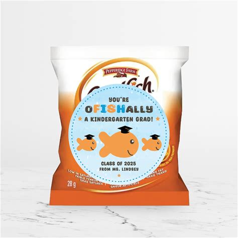Goldfish Kindergarten Graduation Party Favors Stickers, Fish Crackers Graduation Favors Label, Class Of 2025 Grad, Graduation Gift Labels