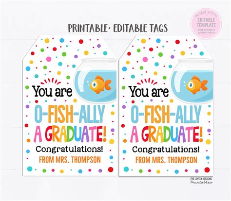 You Are O-Fish-Ally A Graduate Tag O Fish Ally 1st Grader 2nd 3rd 4th 5th Middle Classroom Student Goldfish Gift Congratulations Editable