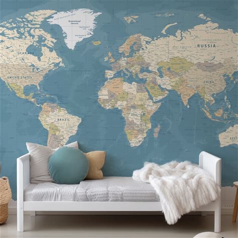 Vintage Geographic Executive World Map Wall Mural - Giant Removable Wallpaper Map Of World - Huge Peel & Stick Fabric Wall Map Mural 670