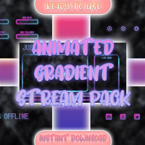Twitch Overlay Pack | Animated Pink Purple Gradient Package | Minimal Stream Overlays Pack