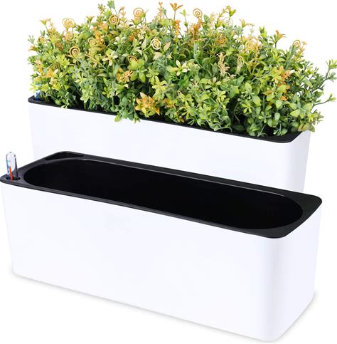 Nihome 2-Pack Self Watering Planters Rectangular 2-Layer Window Herb Planter Box For Indoor Plants Garden Balcony, Window Sill Planters With Water