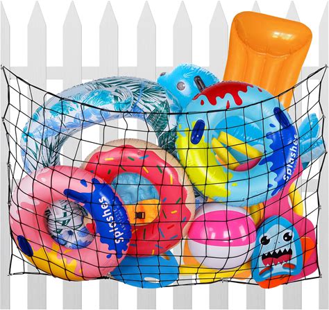 Extra Large Pool Toy Float Storage Net - 71 47in Hanging Heavy-Duty Elastic Mesh Net Organizer With 20 Hooks, Swimming Poolside Fence Toys Holder