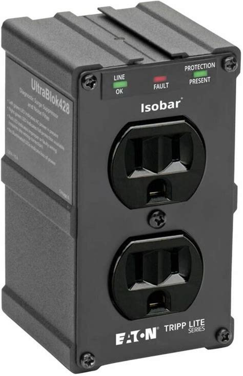 Eaton Tripp Lite Series Isobar 2-Outlet Surge Protector, Direct Plug-In, 1410 Joules, Diagnostic Leds, Black Metal Housing IGRM519423