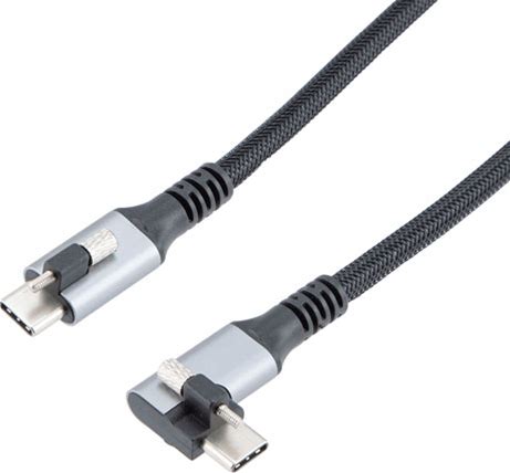 USB 3.2 Locking Cable, Type C Male Top Screw To Left Angle Top Screw Type C Male, 5V, 3A, 5 Gbps, Black Nylon Braid Over PVC Jacket, 1m
