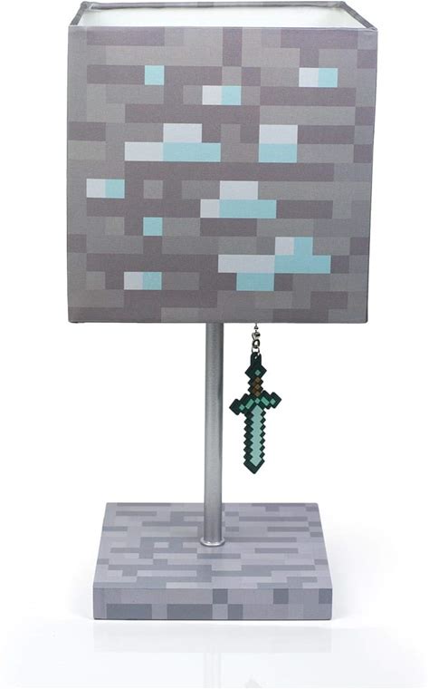 Minecraft Diamond Ore Block LED Lamp W/ 3D Diamond Sword Puller | 14-Inch Lamp