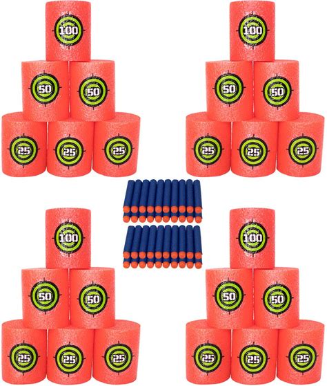 VITURIO 24 Soft Foam Targets Set For Nerf N Strike, Gun, Pistol, And 40 Soft Bullet Dart Cans (64 Pieces Total) Shooting Practice, Toy Blasters