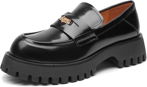 BEAU TODAY Chunky Loafers Women,Patent Leather Platform Loafers For Women,Lug Sole Slip On Penny Shoes,Comfortable Work Office Business Casual Dress
