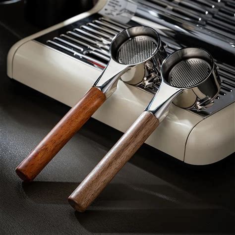 58mm Stainless Steel Double Ear Coffee Machine Handle Bottomless Filter Portafilter Universal Wooden