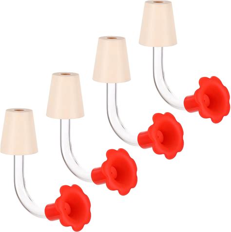 4Pcs Floral Hummingbird Feeder Replacement Parts, Hummingbird Feeder Tubes With Red Floral Tip, For Head For DIY Hummingbirds Feeders Wine Bottle
