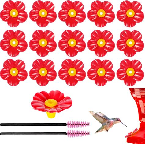 20 Pieces Red Hummingbird Feeders Replacement Flowers With 2 Cleaning Brush Pet Replacement Bird Feeder Replacement Parts Feeding Ports Bee Guards For