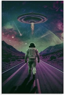 Alien Ufo Spaceship Wall Art, Neon Colors, Framed Canvas Print, Ready To Hang,