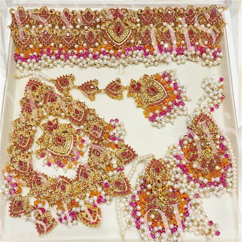 Luxury 5 Piece Mehndi Pink & Orange Bridal Traditional Heavy Set Pakistani Indian Shaadi Nikkah Jewellery Wedding Other Colours Available