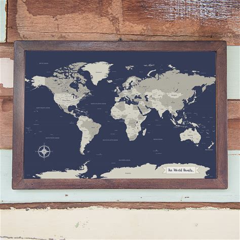 Push Pin World Map Navy, Pin Board Travel Map, World Map Push Pin, Navy Map, Personalised Travel Map, Bucket List Map Places We've Been