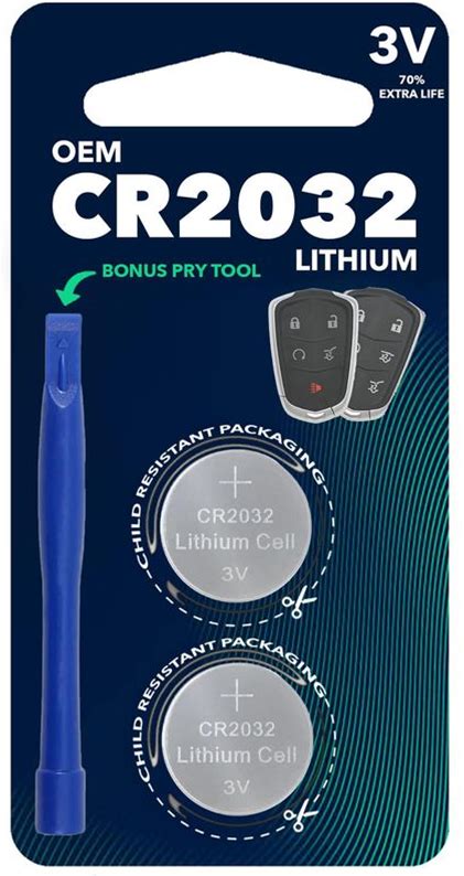 Cr2032 Oem (With Tool) Remote Key Fob Battery For Cadillac Fits 2015 2024 Escalade Xt5 Xt6 Ct4 Ct5, 2 Pack