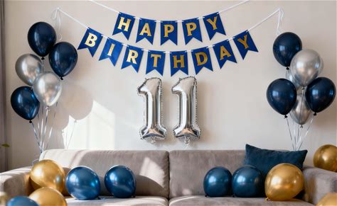 11th Birthday Decorations For Boys And Girls Dark Blue, 11 Year Old Birthday Decorations With HAPPY BIRTHDAY Banner Number 11 Balloon Tablecloth Foil