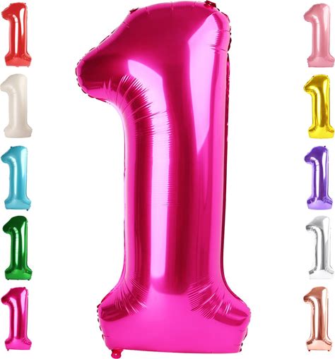 Number Balloons 1, 40 Inch One Balloons For 1st Birthday Girl Boy 1 11 21 Party Decorations Baby Shower Photo Shoot, Hot Pink 1 Balloon