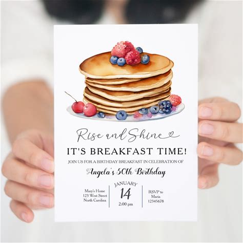 Breakfast Time Rise And Shine Brunch Birthday Invitation