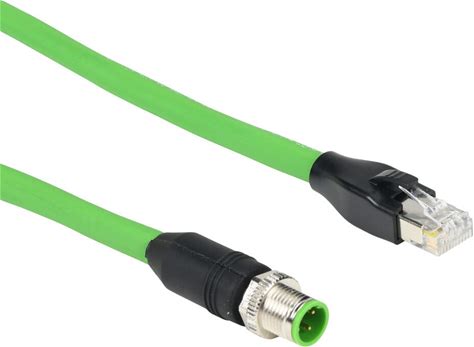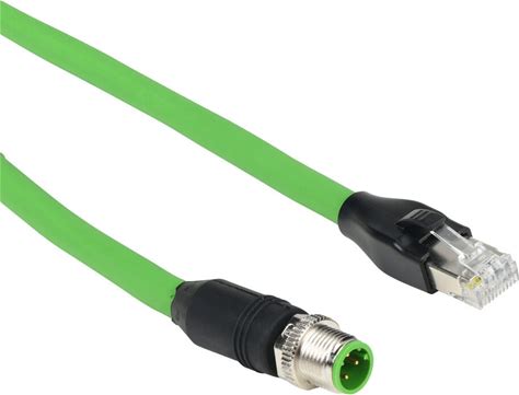 Cat5e Ethernet Connection Cable: 9.8ft/3m, M12 axial male D-coded to RJ45 axial male (PN# 7700-44711-S7V0300)