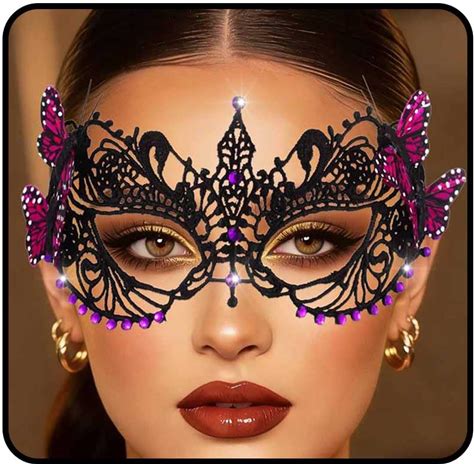 Zinniday Lace Masquerade Masks For Women - 2026 Halloween Venetian Butterfly Mask With Rhinestone