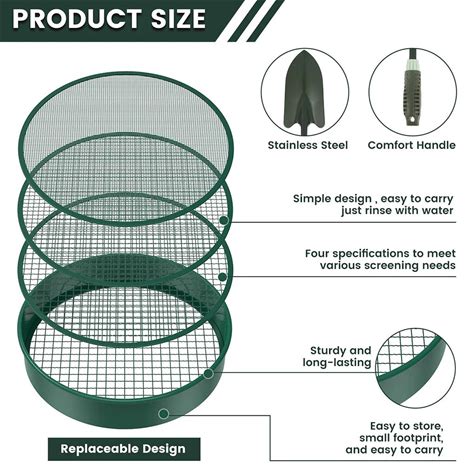 Soil Sifter Metal Garden Sieve Stainless Steel Meaty Garden Compost Soil Stone Sieve Mesh Filtration