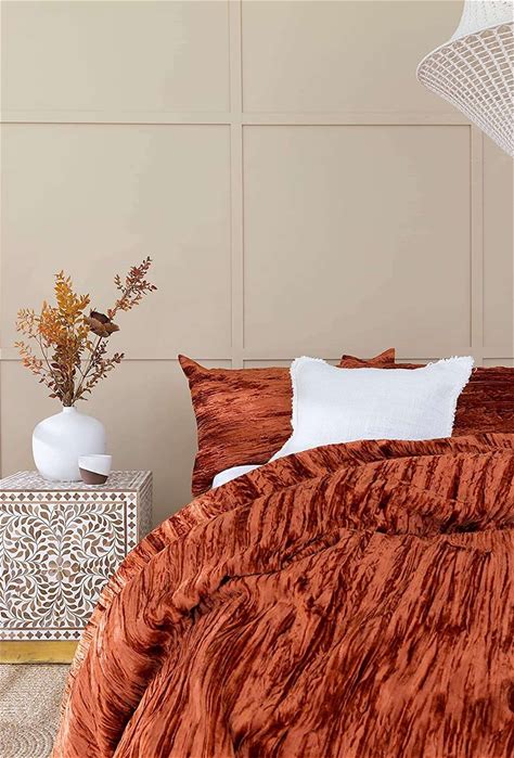 Sophia Art Crushed Velvet Duvet Cover 3 Pcs Set Solid Pattern Luxury Bedding Cover Comforter Cover With 2 Pillow Shames UO Comforter (Crush- Rust,