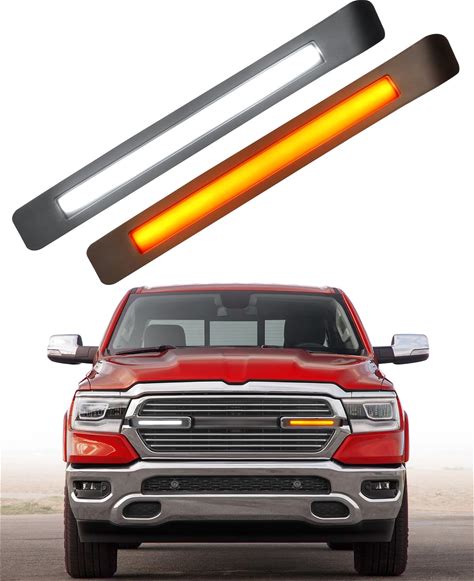GEEGEETOP White/Amber LED Front Grille Light LED Daytime Running Light Sequential Turn Signal Feature Accessories Compatible With 2015-2019 Dodge