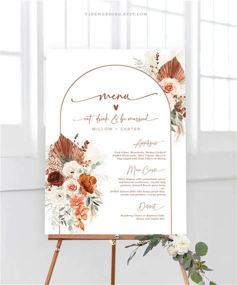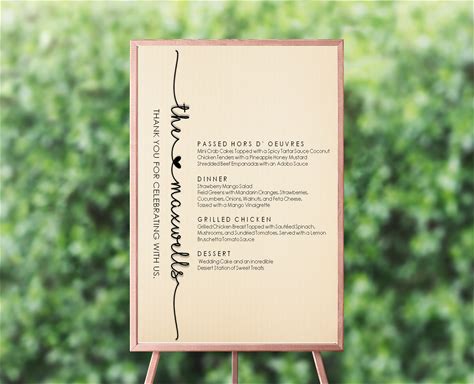 Menu Sign Wedding Template, Printable Menu Signage Template, Canva Editable Template, Instant Download, Modern Minimalist Menu Sign