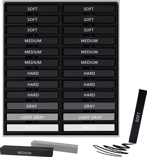 Dlicoda 24 Pcs Compressed Charcoal Sticks With Soft, Medium, Hard And White Charcoal, Square Vine Charcoal Stick Kit For Drawing, Sketching And