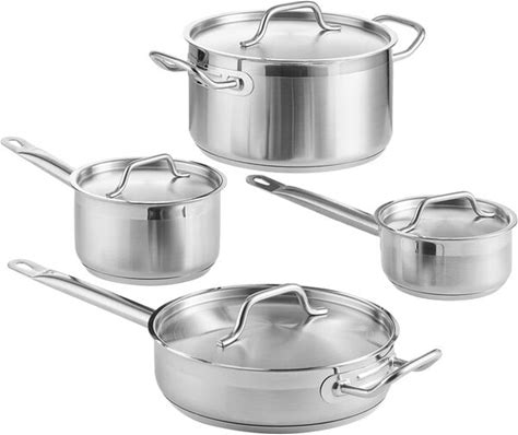 Vigor SS1 Series 8-Piece Induction Ready Stainless Steel Lodging Cookware Set With 1 Qt., 2 Qt. Sauce Pans, 6.75 Qt. Sauce Pot And Covers With 3 Qt. Saute Pan