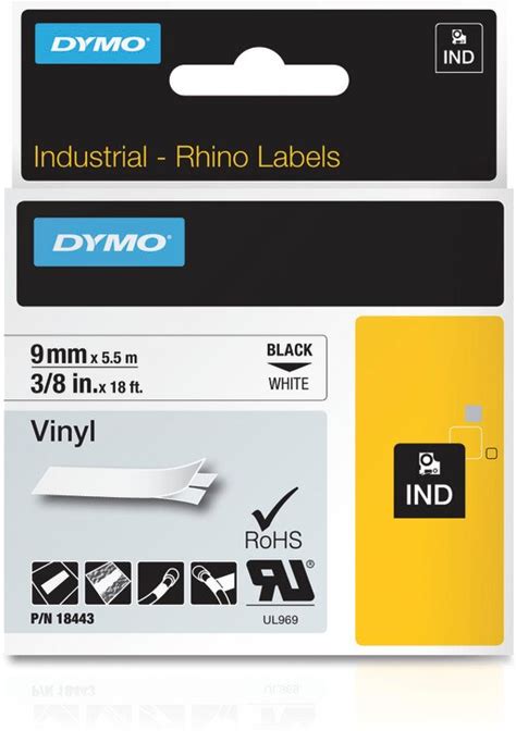 Dymo 18444 Rhino Industrial Vinyl Labels Printers 1/2 18 ft Black Print On White