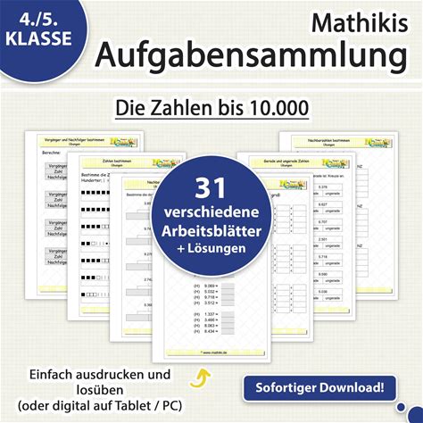 Numbers Up To 10,000 | Math Workbook For Grades 4 And 5 | Digital Download PDF For Tablet & Print