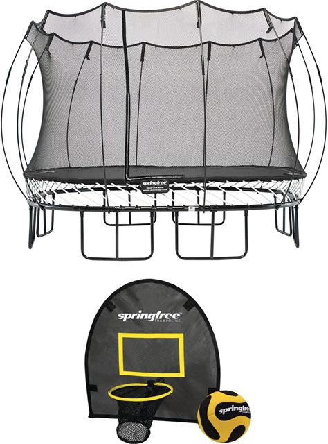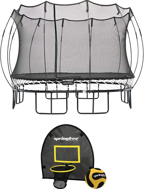 Springfree Trampoline Kids Outdoor Square Trampoline W/Enclosure & Outdoor Jumping Basketball Game Flexrhoop Accessory