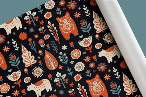 Wrapping Paper: Scandinavian Bears And Flowers Folk Art | Unique Gift Wrap For Birthdays